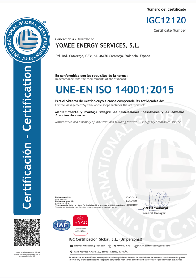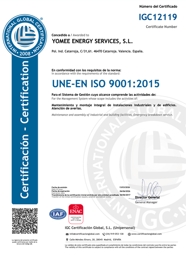 A continuación ponemos a su disposición nuestros certificados de calidad de la ISO 9001 e ISO 14001